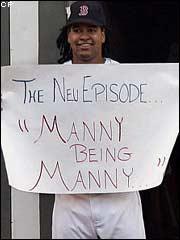 Let Manny be Manny, as Boston manager Terry Francona has already figured out. Get him time off when he needs it, figure there will be a couple of flare-ups, and Manny will produce. Even if at the end of his contract he's no longer generating positive cash flow, he's going to have numbers that leave him a fixture in the lineup producing runs. And for his fielding troubles, it's worth remembering that left field in Fenway is more often about playing caroms off the Wall and holding guys to a single than circus catches.